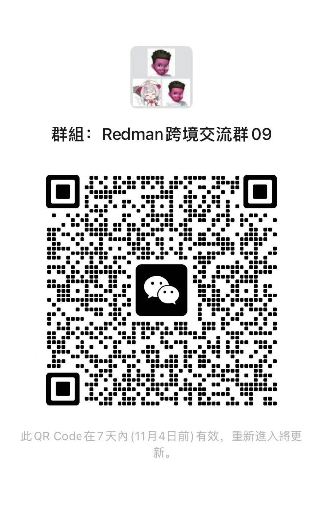 “Redman跨境交流群01-08″已满200人无法扫码入群,可加redman微信或者Line▶redman3721,入群!