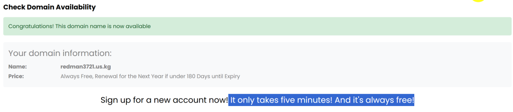 目前免费的后缀是 .dpdns.org ,比如我输入域名:redman.dpdns.org 是可以直接免费注册的