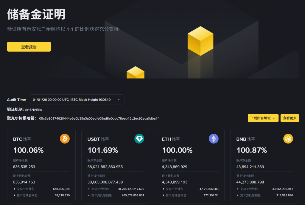 币安提供 Proof of Reserves(PoR)体系,用户可通过 Merkle Tree 等方式核验“自己的余额是否被纳入负债快照”,并强调 1:1 资产支持的披露逻辑。binance.com/zh-CN/proof-of-reserves