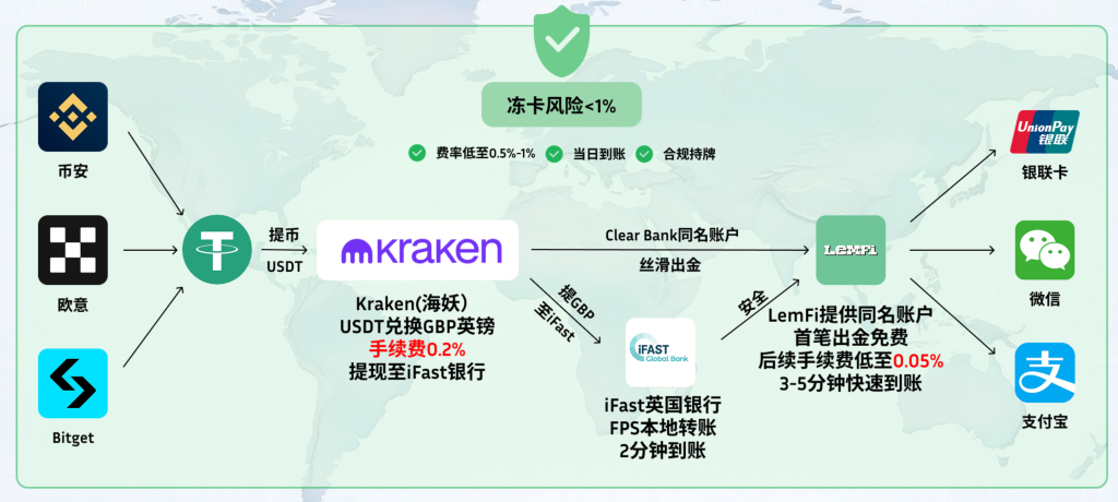 | 其他路径 | SafePal钱包 | ~1–3% | 平台免费 中转行可能收费 | 支持U卡转账至Wise等,适合小额中转 |