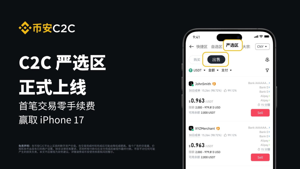 币安设有“严选区”,支持最高5万美金单笔交易,且承诺100%赔付,相对更有保障。 - 收款卡建议