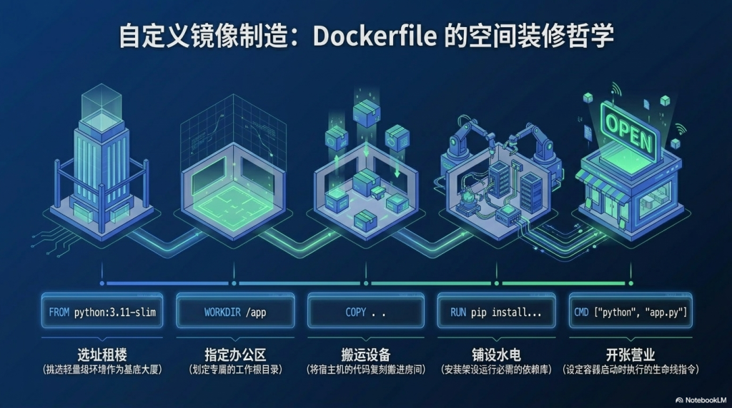 python:3.11-slim作为底座。 - 设置工作目录 (WORKDIR):指定程序在镜像内存放的位置。