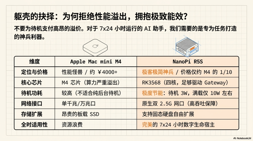 虽然 Mac mini M4 性能强悍,但对于 OpenClaw 这种需要 7×24 小时挂机运行的服务来说,高昂的价格(约 4000 元)略显浪费。